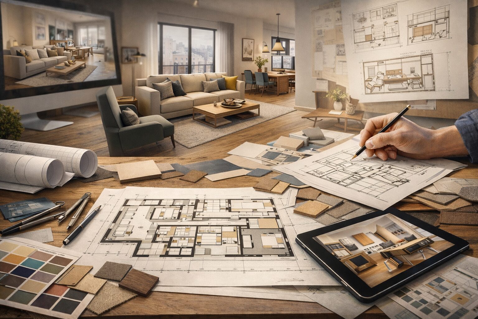Первым делом дизайнер приезжает к вам домой и замеряет всё до миллиметра. Это не шутка — именно до миллиметра. Потому что потом, когда вы захотите поставить встроенный шкаф или сделать нишу под телевизор, каждый сантиметр будет на счету. Обмерный план — это основа основ, без него дальше двигаться просто невозможно. Вообще, если студия предлагает сделать дизайн проект квартиры без выезда на объект, это уже красный флаг.